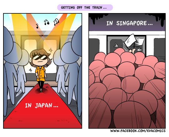 Hmm! I received a lot of criticism from the comparison comic strips because they would see that I was looking down on Singapore and that I was pro-Japan. But if you see it in another way, it brings awareness to our actions. Of course, it’s obvious which side is better sometimes, but sometimes the Internet misinterprets the fact that I think Japan is always better. It’s just comics; you look back at it, and you look back at yourself.