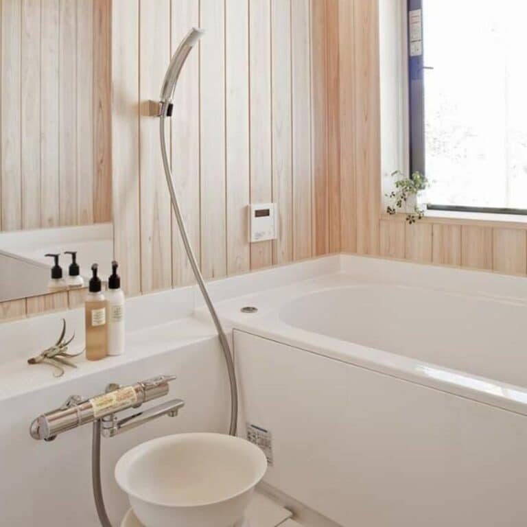 For the most authentic Japanese bath experience, you will like to heat the water to about 42°C. The electricity bill can get quite hefty if you use an electric heater. To save on energy costs, consider using a gas heater. If you don’t like to reuse the same bath water, please avoid storage heaters, which will take time to heat the water, especially if you have a big family. Discuss this with your interior designer to decide on the best energy-saving heater.