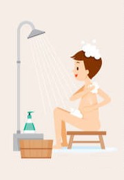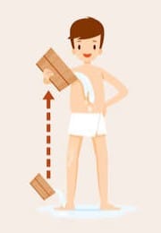 Kakeyu should be poured on your body from the regions farthest from the heart to the nearest. All in all, ten scoops of water should do the trick. The recommended sequence is: