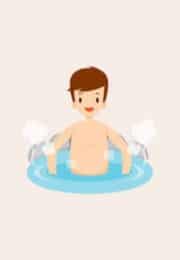 When entering the onsen, gently lower yourself into the water until your body is half in, then stay there to adjust to the hot water temperature to prevent straining your body later on. Once you’re comfortable, move your limbs and slowly ease the rest of your body into the water.