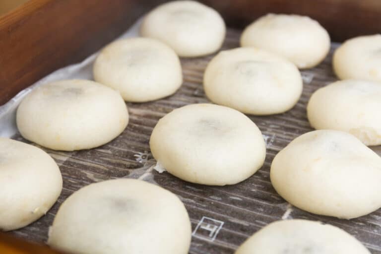 Steamed buns filled with sweet red bean paste, supposedly named for the hot spring water used in their dough and steam for cooking.
