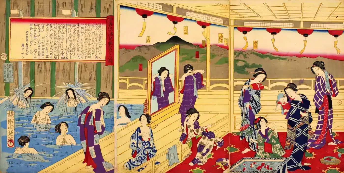 During the Edo Period (1603-1868), public bathhouses called sento made bathing accessible to commoners. These baths ranged from steam rooms to full-immersion pools. Interestingly, mixed bathing, where men and women bathed together, was once common and noted for its cultural differences by foreign visitors.